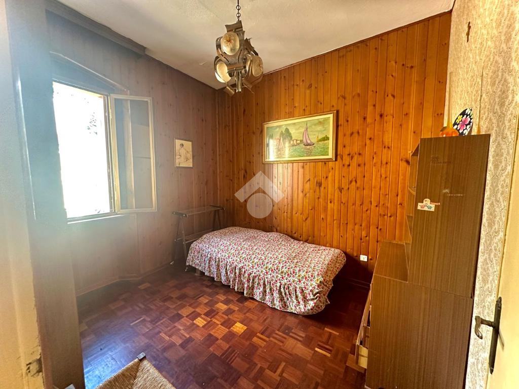 Secondo piano: cucina e soggiorno separati, due camere da letto, bagno con vasca.