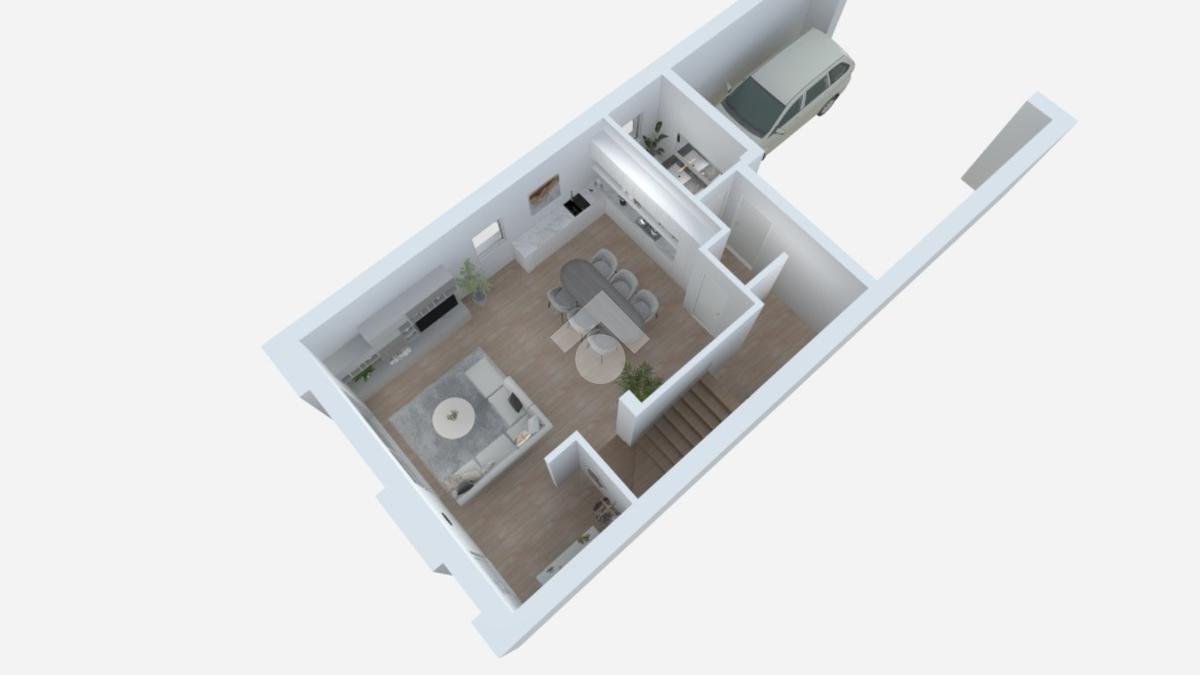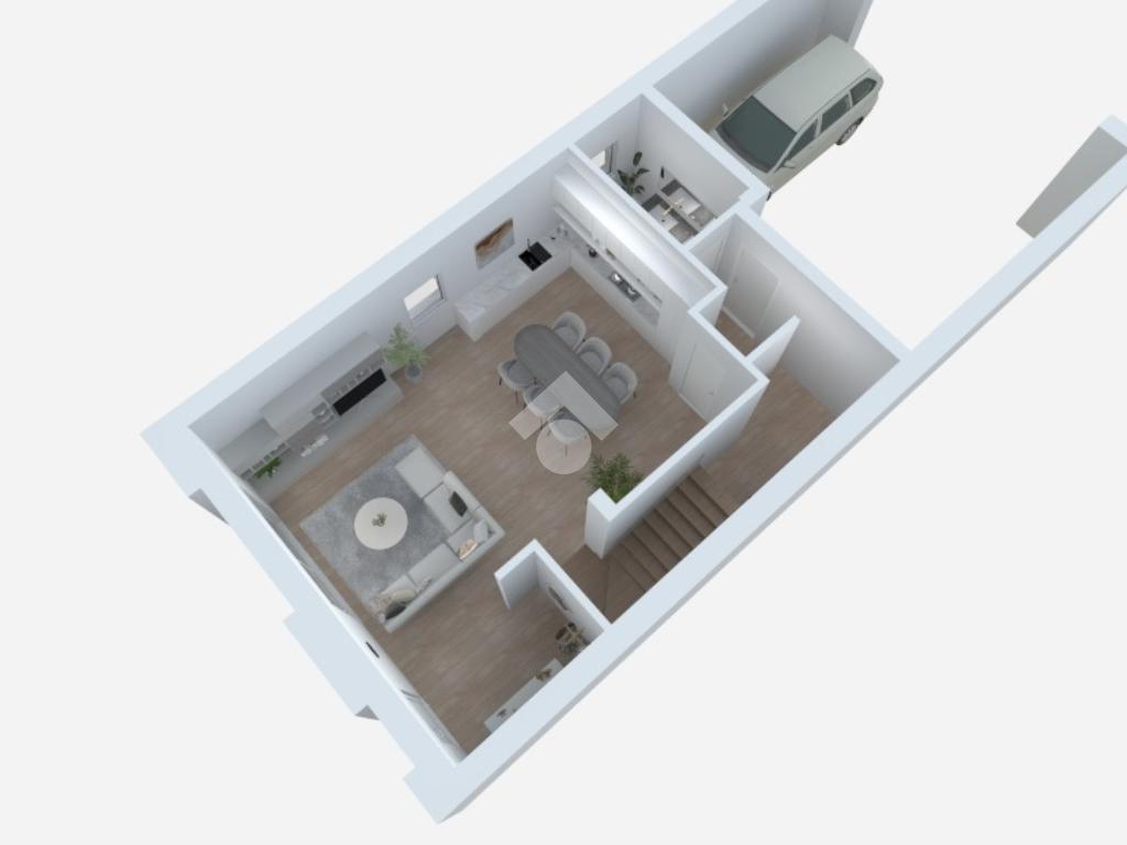 L’abitazione si sviluppa al piano terra con luminoso soggiorno e cucina in open space, bagno di servizio e collegamento diretto al garage. Al primo piano troviamo tre camere da letto, due bagni, cabina armadio, terrazzo e poggiolo.